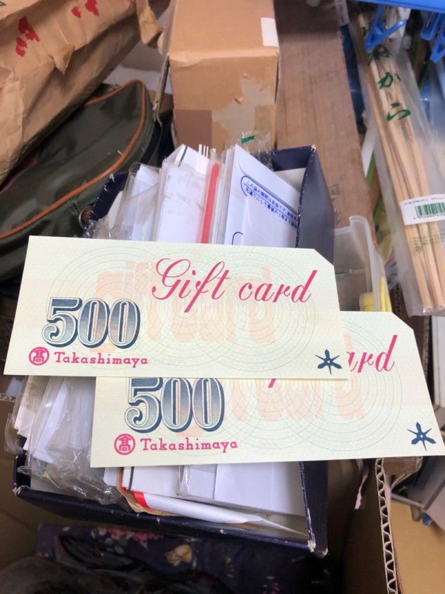 高島屋のギフト券や通帳や小銭、戦争の勲章が見つかりました。ギフト券は写真のカバンの中にある封筒を一枚一枚チェックして見つけました。さらに