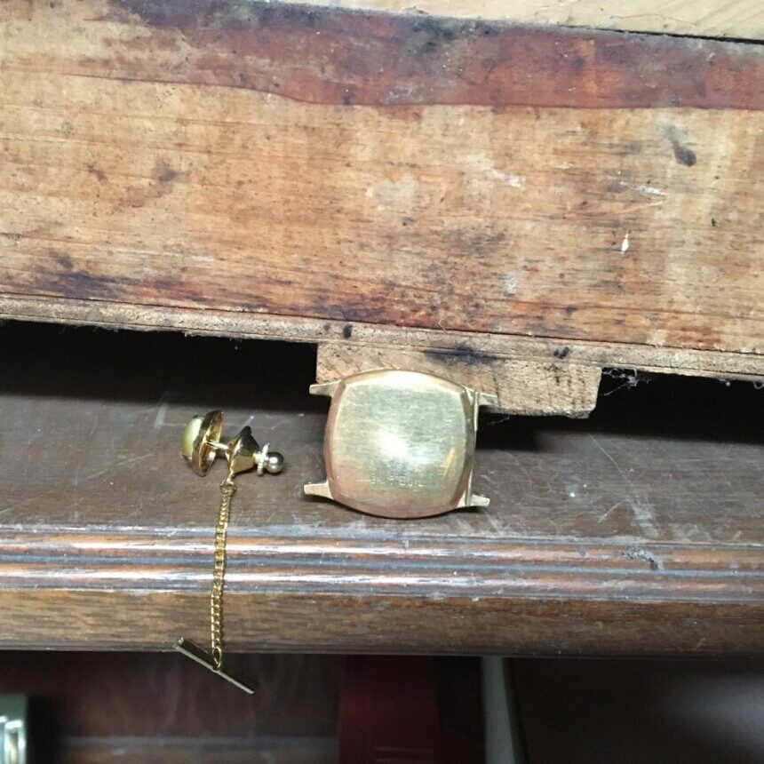 貴重品はほぼほぼ出ないとのことでしたが、やはりK18の時計が出ました。ご依頼者様が発見できないものを細かく見つけていく、そしてお返ししていくことが我々の強みです。