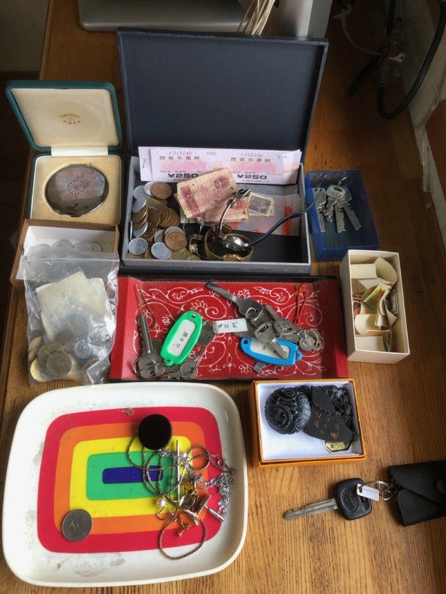 で遅くなりました。上記の写真は作業中に出てきた貴重品です。指輪、お金カード、判子など、いつも通りたくさんの貴重品と思い出の品が出ました。