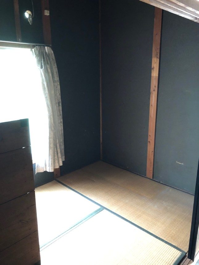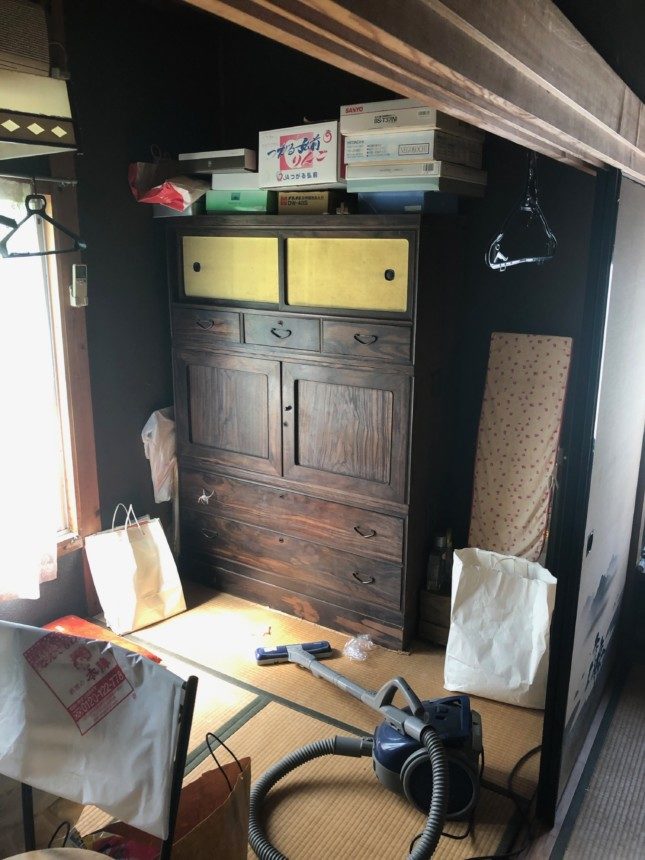 タンスをのけるとすごい埃でしたので、掃除をする為に木製品を一部屋にかためております。解体の時、掃除しない業者も多いのですが、できる限り気持ちよく部屋を見て頂きたいので、簡単にですが掃除させて頂きました。